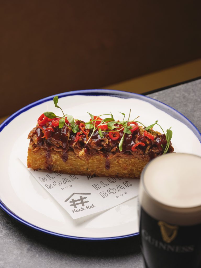 Every Friday, expect a menu that turns comfort food into a culinary experience – from caviar and crème fraîche-topped hash browns to soy-braised beef cheek with crispy chilli, all built on Hash Hut’s golden base and elevated for Blue Boar Pub.